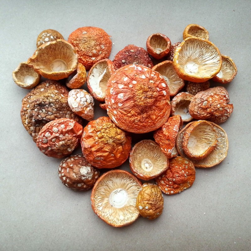 Після збору гриби проходять процес делікатної сушки, який зберігає всі корисні властивості мухомора червоного.